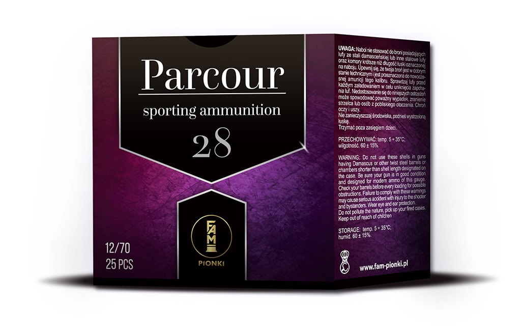 Bardzo wysoka prędkość wiązki śrutu o naważce 28g pozwala zmniejszyć wyprzedzenie na dużych dystansach strzału (nawet powyżej 80m przy zastosowaniu amunicji z koszyczkiem). Przy zastosowaniu amunicji bez koszyka (BIOR), zakładając podobne wyprzedzenie możemy bez trudu trafiać rzutki znajdujące się w odległości poniżej 20m. Amunicja Parcour dostępna jest ze śrutem o nr 2,00 mm, 2,25 mm, 2,40 mm co zapewnia jej wyjątkową uniwersalność zastosowań.